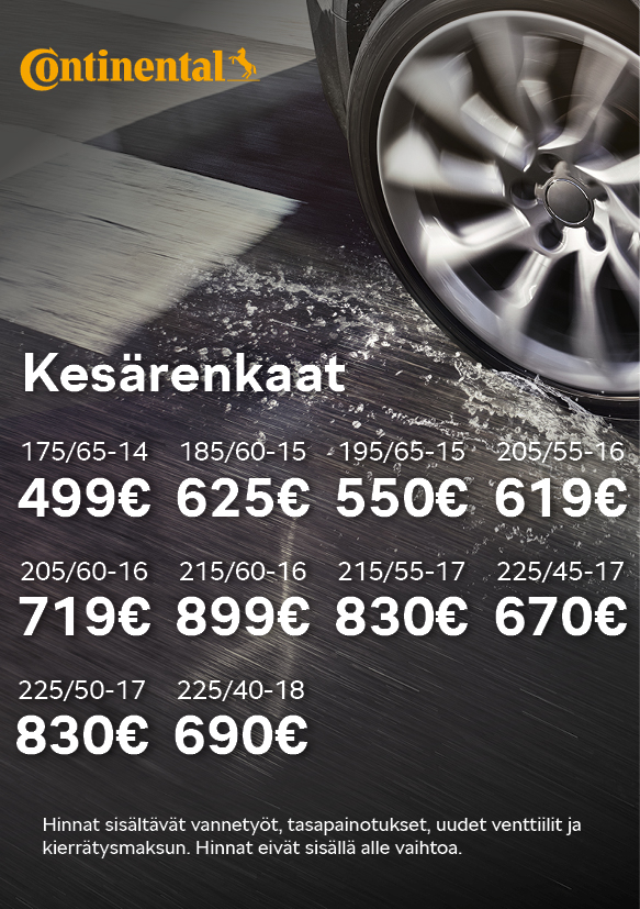 Edullisempana vaihtoehtona myös Continentalin valmistamat Gislaved ja Viking renkaat. Kysy tarjousta omaan autoosi!
